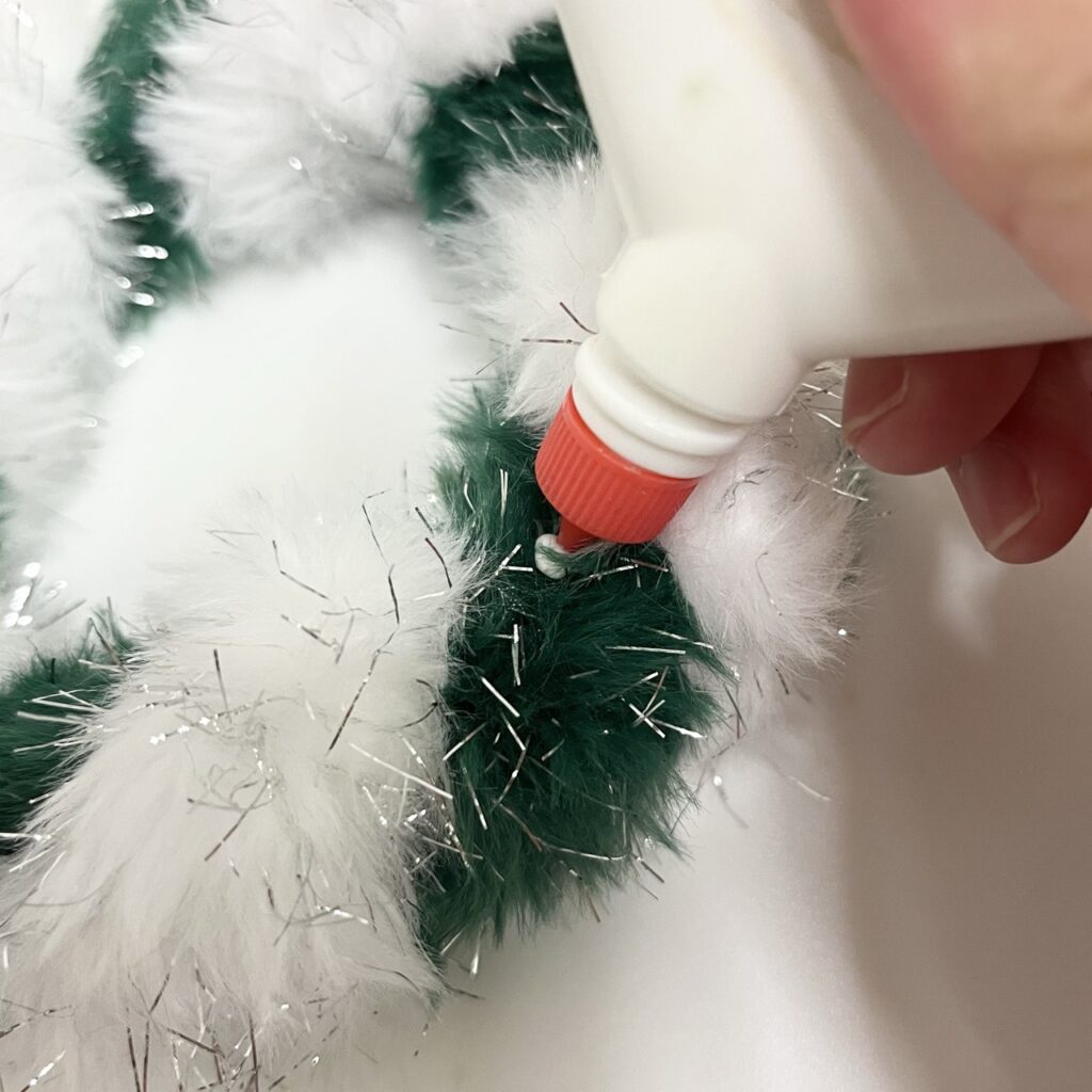 3・白のモール(1の状態)を輪っかに巻き付けていきます
