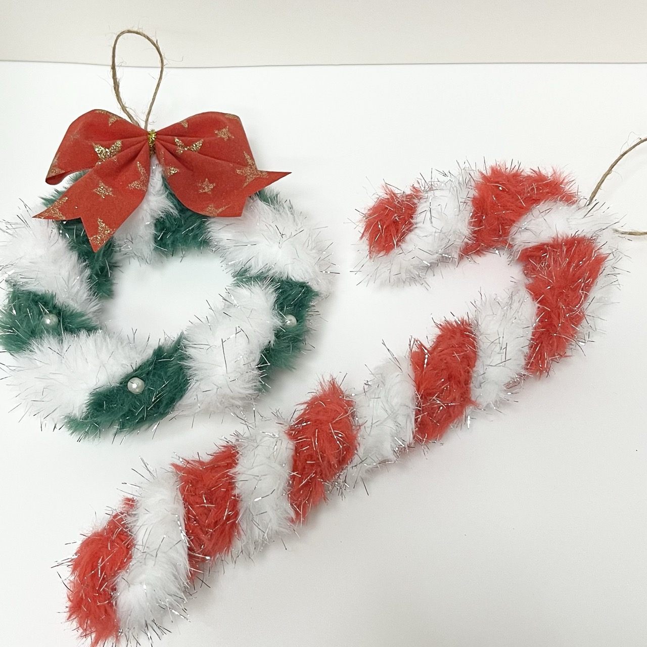 - セリアのふわふわモール(レッド・ホワイト)1本ずつ