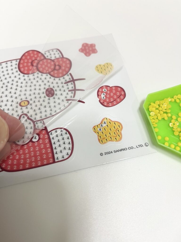 シール台紙にビーズを貼って完成させるダイヤモンドアート風クラフト💎