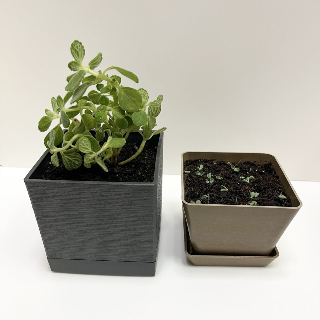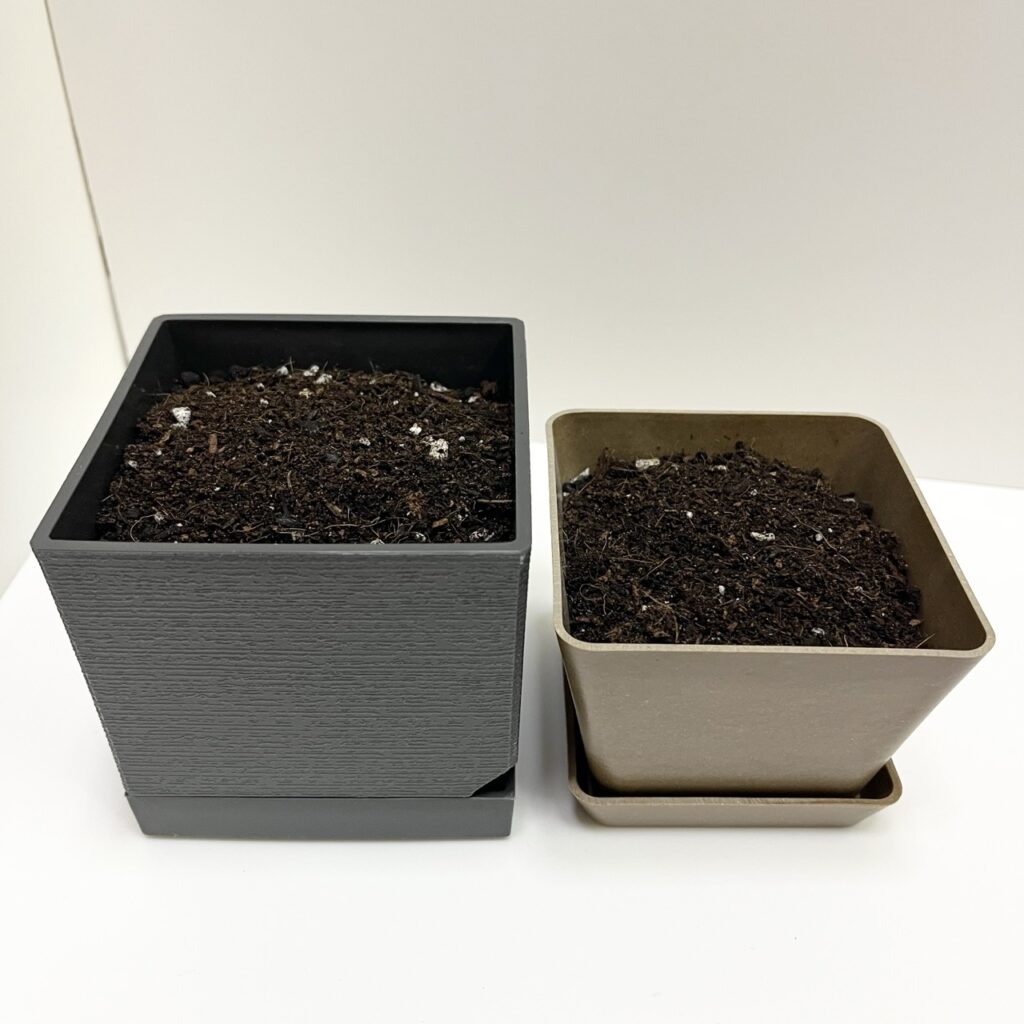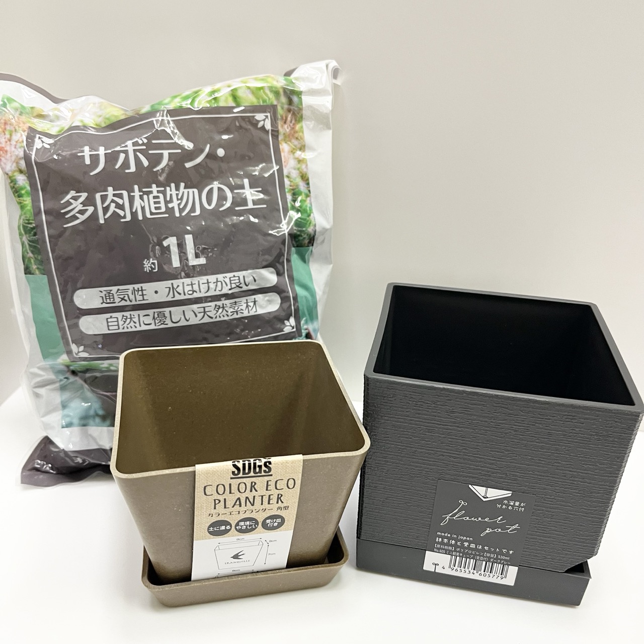 アロマティカス用にグレー、子宝草用にブラウンの鉢を選びました。
