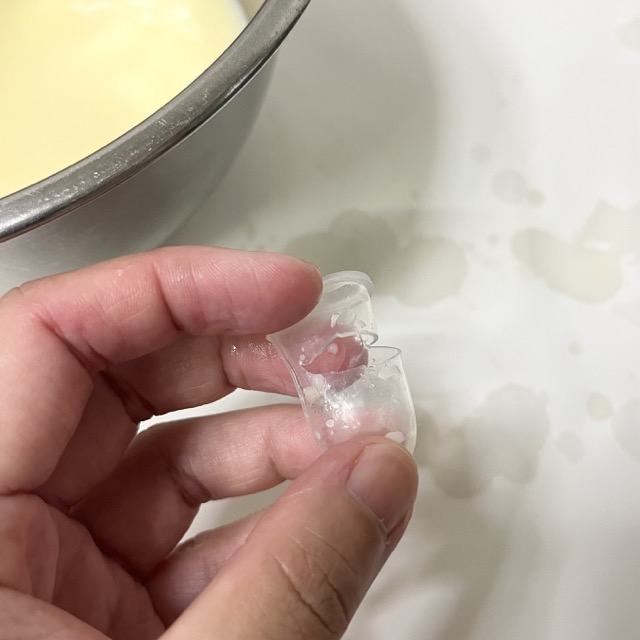 ✅️ ゴムの口をちゃんと抑えよう(抑えが甘いと液が吹き出しました😂)