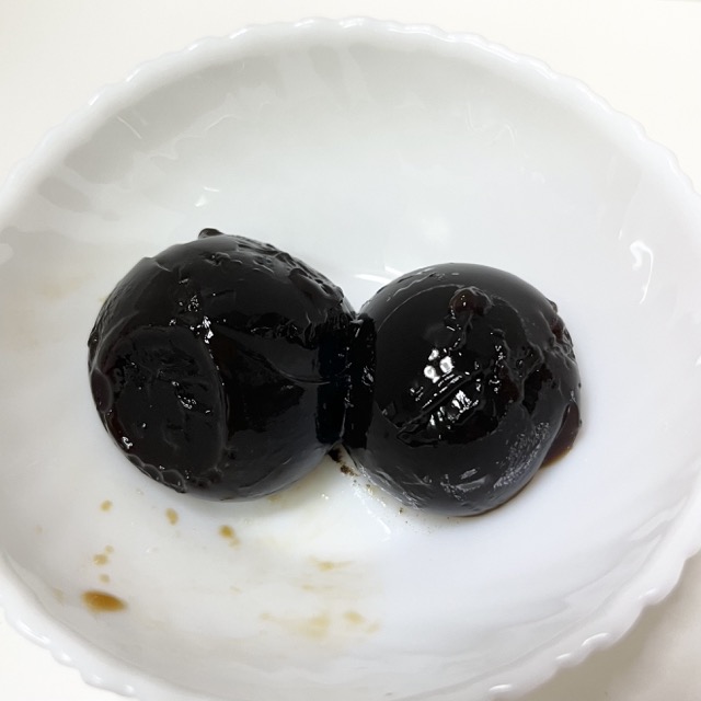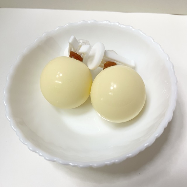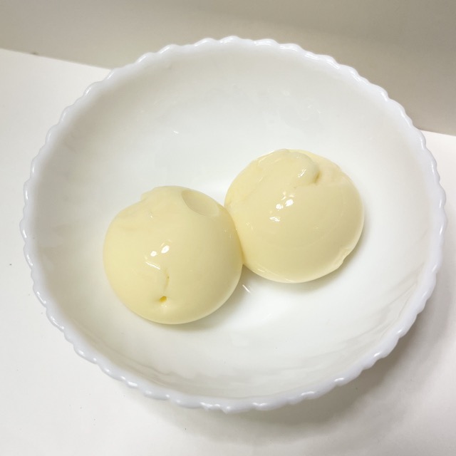 おー!一瞬でむけました!!まんまるじゃないけど、美味しそう💘