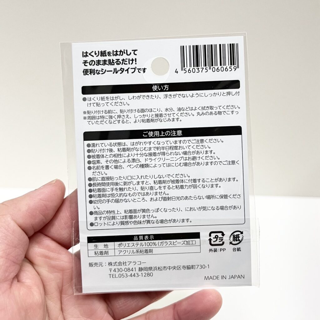 セリアの反射布タグシールは、